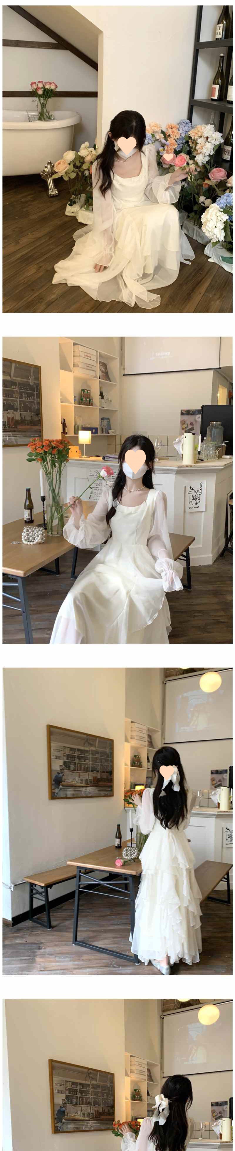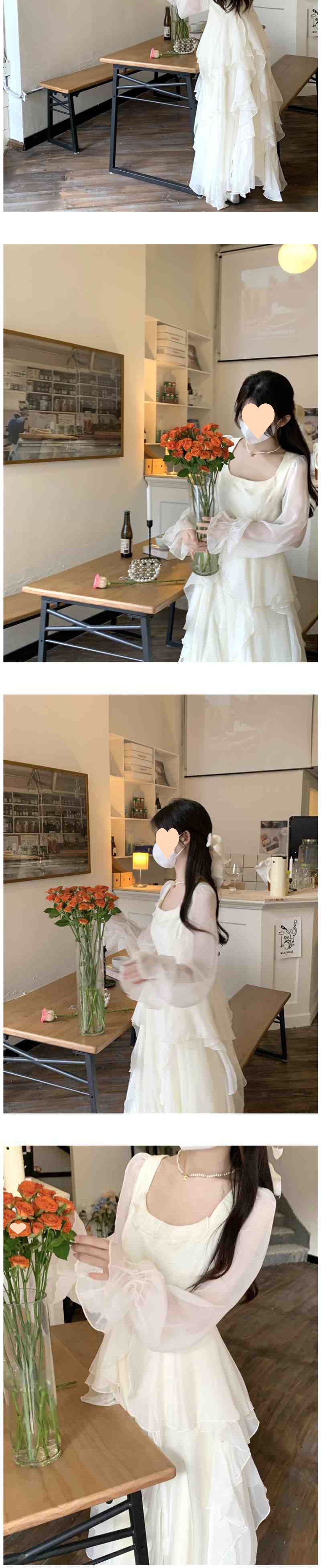 Temperament dress with ruffles and long sleeves, French square neck chiffon skirt, children's summer style long skirt, wholesale and issued by manufacturers