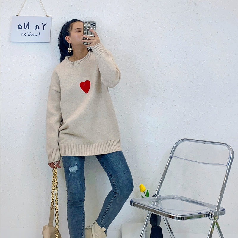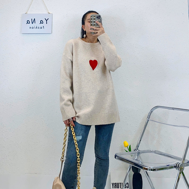ULOVED New love solid color sweater Round neck loose lazy wind sweater women